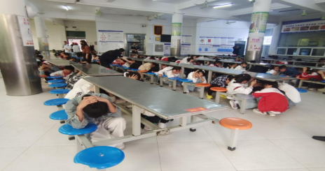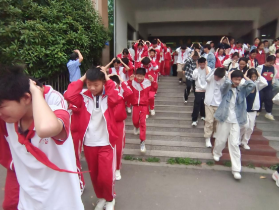 上午9时,演练正式开始。食堂内突然响起紧急警报声,正在食堂就餐的学生们在老师的指挥下,迅速放下餐具,各自先行找掩体躲避。随后,按照预定的疏散路线,用手抱住头,低姿弯腰,快速有序地向食堂外安全区域疏散。老师们坚守岗位,在各个关键位置引导学生疏散,提醒学生不要拥挤、推搡,注意安全。整个疏散过程紧张有序,仅用了1分40秒,全体师生就全部安全疏散到指定的集合地点。到达集合地点后,各班班主任立即清点人数,并向演练总指挥报告班级学生情况,确保无一人遗漏。