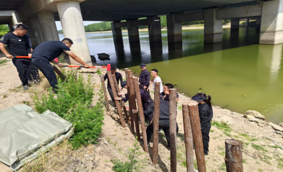 随着演练指令下达,各应急救援队伍迅速集结,奔赴模拟灾害现场。铸安应急救援队队员迅速完成救灾安置帐篷搭建工作,并开展木桩加固损毁堤坝作业,队员们齐心协力,将一根根木桩快速打入堤坝周边,再用铁丝、沙袋等进行加固,有效抵御了洪水的进一步冲击,成功控制住险情。