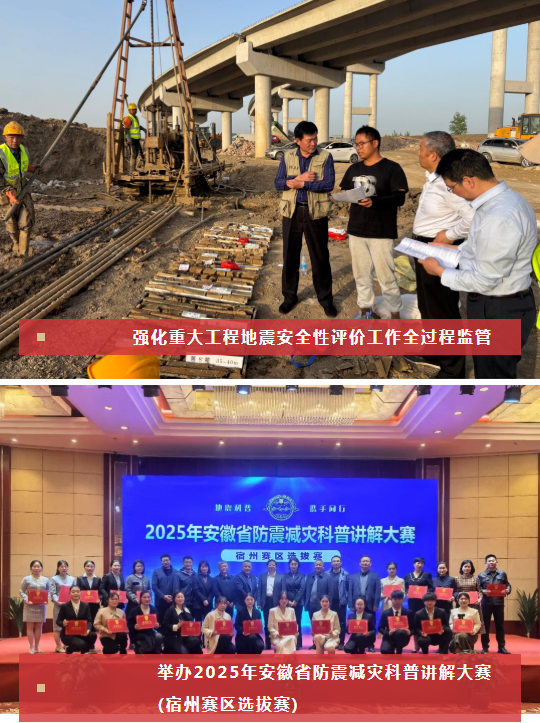 一是高位推动明责落责。市委、市政府将防震减灾纳入“平安宿州”建设考核体系,全年召开7次专题会议研究部署重点工作,印发实施《关于进一步加强防震减灾救灾工作的意见》等文件并跟踪督导落实,推动责任从“软约束”向“硬指标”转变。科学编制市级“十五五”防震减灾发展规划,为未来五年工作锚定方向。